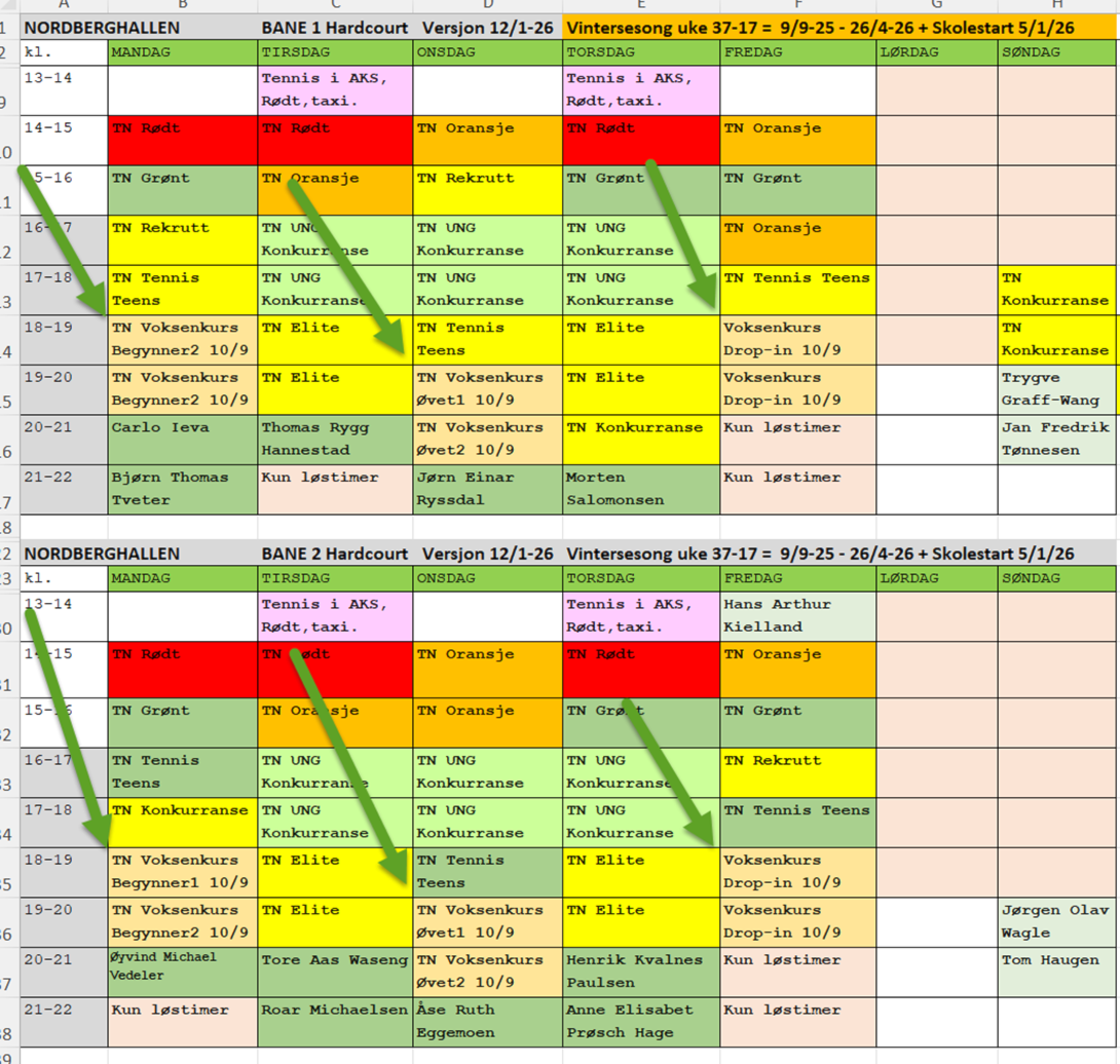 Oppstart er straks etter dugnaden hvor Nordberghallen settes opp. Det er ikke kurs i skoleferiene. Kursslutt er siste uke i vintersesongen og kort tid før dugnaden med å ta ned Nordberghallen gjennomføres. For flere detaljer se oversikten under.